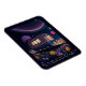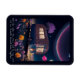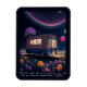 Whimsical flexible magnet for book lovers features AI generated digital art dreamscape with a illuminated bookmobile in a field of flowers under a night sky. "Meet me under the stars and we can read all our favorite banned books together" text can be customized to your own special message