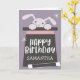 Sweet magic theme birthday card for a girl. Illustration of a cute bunny poking her head out of a top hat. There is also a magic wand laying next to the hat. Inside the hat it says "happy birthday Samantha." Add the recipient's name here. There is also a cute message inside that's editable. The texts are easily customizable online.