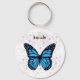 Magical blue butterfly pink glitter art keychain