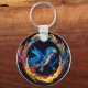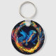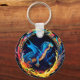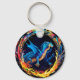 Magical Blue Dragon Surrounded by Mystical Flames Keychain