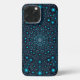 Cosmic mysterious mandala with glowing bright sky blue lights on a black background.