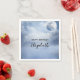 Paper napkins with a magical fantasy sky with fluffy blue clouds and a big beautiful moon. 2 white swans flying off together.