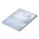 A notepad with a magical fantasy sky with fluffy blue clouds and a big beautiful moon. 2 white swans flying off together.