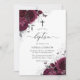 Magical Burgundy Roses With Silver Elegant Baptism Invitation
