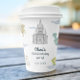 Cute pastel birthday paper cups featuring playful flying dragons, a magical castle and soft clouds paired with fun, stylish typography on different color backgrounds. You can find more matching items from this collection in our store.