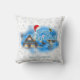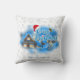 A Christmas night scenery in blue magic with a Merry Christmas calligraphy script, a Christmas hat, candy and winter cherries.