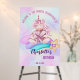 Magical day rainbow cute pink unicorn birthday party welcome sign template.