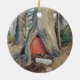 This Christmas ornament features a photo taken in Elf Village in the woods of Killingworth, Connecticut at Winterberry Christmas Tree Farm