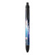 Very nice blue, or black ink pen. I will be buying more. The print was fine. I can easily see the print. The flowers look great.