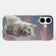 A whimsical flying cat in a pastel sky with sparkling stars, perfect for dreamy and fantasy-themed phone cases.