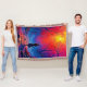A quality printed throw has its advantages. This is a much finer weave throw than its loopier cousins, and though lighter, it is worth the investment for custom room accessorizing. The back is much prettier than the typical brown, and the fringe on the long sides very vivid, the selvage nicely done. Before photographing, I washed the throw in cold water, delicate, with a thicker woven throw the same size. On tumble dry low, this throw was dry in half the time as the other. This is a very practical quality if you use throws for furniture covers or to wrap up in frequently. The sleekness of the fabric makes it a great layer for accenting or protecting without the feeling of sitting on too much stuff. Perfect for napping or when you feel a light chill coming on. The color printing is beautiful and on this fabric, matched the design and color of my Photoshop image. This is an advantage for blending room fabrics and colors. The fringe on the short sides prints the colors from the design image and therefore varies from the side fringe. I streaked a white fractal line through the plaid pattern to give the illusion of weaving. This printed as crisp as an illusory thread, and put some white in the short side fringe, showing another advantage of print vs loomed- for artistic purposes, line lines, detail, and color integrity can be planned and preserved. My loomed throws have color limitations and more of a needlepoint texture. Print throws reproduce an exact image. The throw felt a little stiff straight out of the package, but this went away in the first delicate wash. Of course I searched the wash water for ink or bleeding and there was none.