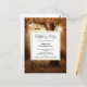 Birthday party postcard invitation with a whimsical enchanting illustration in rich brown and yellow colors. A magical mystical forest with a large tree holding an old fashioned lantern. Fairy lights dancing all around. An enchanting wonderous design.
