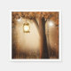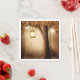 Paper napkins with a whimsical enchanting illustration in rich brown and yellow colors. A magical mystical forest with a large tree holding an old fashioned lantern. Fairy lights dancing all around. An enchanting wonderful design.