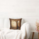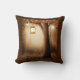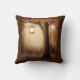 Pillow with a whimsical enchanting illustration in rich brown and yellow colors. A magical mystical forest with a large tree holding an old fashioned lantern. Fairy lights dancing all around. An enchanting wonderful design.