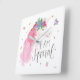 This clock is so cute! Loved that I could personalize it with my daughter’s name. She just got her big girl bed so we decorated with unicorns. I thought this would be good to have in her room. We are using it to help her learn how to tell time. She absolutely loves it! The color was just like the design on the website. Everything turned out just as I expected.