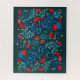Watercolor botanical illustration pattern with magical flowers on dark teal background.