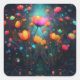 Magical Glowing Wildflowers Rainbow on Blue Square Sticker