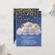Magical Golden Stars Navy Blue Twins Baby Shower Invitation