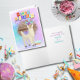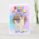Adorable birthday card with a colorful llama working to be a llamacorn (notice the headband), and a birthday cake. Inside messaging reads: "Here's hoping your birthday is as magical as a llamacorn."
