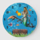 Magical Mermaid Treasure Hunt Blue Ocean Fantasy Large Clock