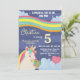 Magical modern unicorn rainbow stars 5th birthday invitation