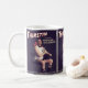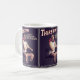 This mug features a classic magic design with an updates twist. Borrowing from the all-time magical greats of the late 19th/early 20th century, like Kellar and Thurston, the design features similar fonts, colors, and the classic devil imps on the shoulder. This modern magician goes by Thirstin, and instead of entertaining actual vaudevillian audiences, he fights for attention on modern social media, always showing off, perennially "thirsting" for attention.