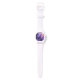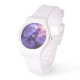 I only have one complaint. I ordered the watch with clear case and strap, and what was sent was white case and strap. I'm going to keep it because 1) it looks very nice in white, and 2) it would take too long to get a replacement made and sent in time for my occasion. Aside from the mix up with the color, the watch does look very good in white. The purple dial is actually sparkly which did not show in the online images. That was a nice surprise. If you like Swatch watches this is very similar to those. It's 33.6mm in diameter, 10.5mm thick, and 40.6mm lug to lug. Stainless steel case back says 3ATM/30m WR, so no swimming or showering or submerging this one. If you like Woodstock, this is a great choice.