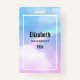 Personalized name badge with a soft and lovely background image. Pastel blues and pink clouds with a magical rainbow.