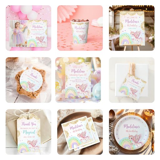 Magical Rainbow Unicorn Pink Gold Birthday Party Thank You Card