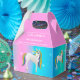 Who doesn't need a little bit of fantasy in life, add some of it to your Birthday Party with these favor boxes which paint a beautiful white unicorn with rainbow mane and tail. Its magic golden horn bright up the stars at the background.