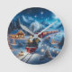 Magical Snowy Christmas Train Winter Scene Round Clock