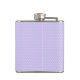 A flask which says: Magical Stuff. Designed with an illustration of a cute and kawaii unicorn sleeping peacefully with a fancy curly mane and tail. A colorful rainbow trailing behind a shooting star . Background is a white and purple polka dot pattern. Adorable fantasy design.