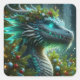 A magical Christmas dragon with blue and turquoise scales and glowing turquoise eyes wearing a festive crown of fir boughs, pinecones and berries and surrounded by fir trees, Christmas ornaments, berries and tiny golden glowing lights.