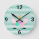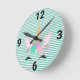 MAGICAL UNICORN AQUA GREEN STRIPE WALL CLOCK