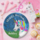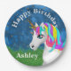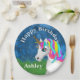 Add sparkle to your party table with these Magical Unicorn Birthday Paper Plates! Designed with a cute white unicorn and a rainbow-colored mane and tail in bold hues of pink, purple, turquoise, and yellow, the design is accented with a shimmering golden horn and magical sparkles. Perfect for birthday cake, snacks, and festive fun!
