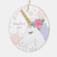Magical Unicorn Glitter Snowflakes Custom Name Ceramic Ornament