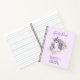 Baby shower guest book - spiral notebook with an elegant watercolor illustration featuring a watercolor mom and baby unicorn with purple mane and forelock. Delicate orange flower blossoms surround the pair.