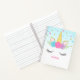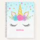 Personalize this cute unicorn face custom notebook for kids. Design features pink, purple, teal stars and flowers, with a touch of faux glitter.