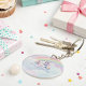 Surprise your guests with these magical unicorn rainbow acrylic keychains. Designed in pastel pink, purple, and yellow with a whimsical unicorn, these keychains make a fun and practical party favor. A lovely keepsake from your girl’s unicorn birthday celebration.