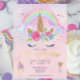 Magical Unicorn Rainbow Birthday Invitation Foil Invitation