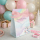 Send your guests home with joy using these magical unicorn rainbow birthday favor boxes. Decorated in pastel pink, purple, and yellow with a whimsical unicorn design, these boxes are perfect for filling with candy, toys, or small gifts. A sweet and practical detail to complete your unicorn birthday celebration.