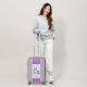 A lovely magical unicorn suitcase luggage featuring a colorful unicorn standing on a rainbow with purple string lights and purple border . The perfect travel gift to give to those who love magical and mystical unicorns kids and adults alike.. Personalize with a name.