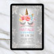 Magical Unicorn Silver Winter Snowflakes Birthday Invitation