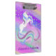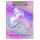 This magical clip board features a lovely Unicorn with a beautiful swirling mane and tail. Designed in purples, lavenders, and pinks with sparkly silver stars and personalized with your name. Makes a great gift for girls of all ages! Design©Rosalind Moore, Cherry Lane Designs.