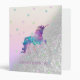 Magical Unicorn, Stars, Silver Glitter Bokeh 3 Ring Binder