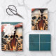 Magical winter moments, two skeletons wrapping paper sheets