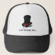 Add a name or a custom message to create a personalized gift that's perfect for magicians of any age. This trucker's hat has a realistic style illustration of a magician's hat in black and red and a magic wand in black and white with a name below the graphic.