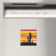 Abstract geometric desert sunset illustration with yellow, orange and red diagonal stripes and cactus decoration. Add your name/monogram or delete the text.