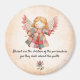 Sewing themed round fridge magnet with sweet illustration of an angels dressed in a colorful patchwork motif and flower accent. Can be edited to personalize with your own text. Choose from 3 sizes.