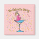 This original design features a bachelorette in a martini cup having a drink. Confetti is coming down around her. The night is alive with festivities.